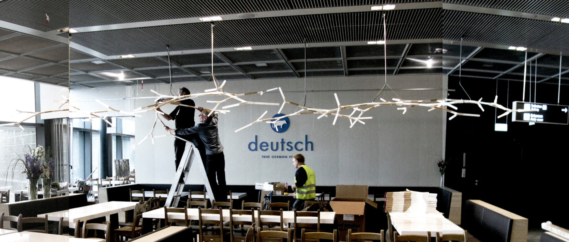 Das Gestaltungskonzept für den Innenausbau des Restaurant Deutsch am Frankfurter Flughafen basiert auf der Grundlage von atmosphärischen Gegensatzpaaren wie: