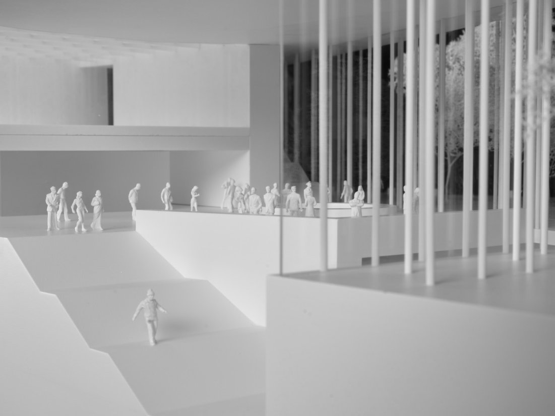 Die Struktur mit ihren eleganten schlanken Stützen verwebt sich wie selbstverständlich mit den landschaftlichen Elementen des Großen Tiergartens. Wie auch die Kuppel, einem Wahrzeichen unserer modernen Demokratie, empfängt das neue Eingangsgebäude den Besucher mit großzügigen Einblicken, Ausblicken und Durchblicken.