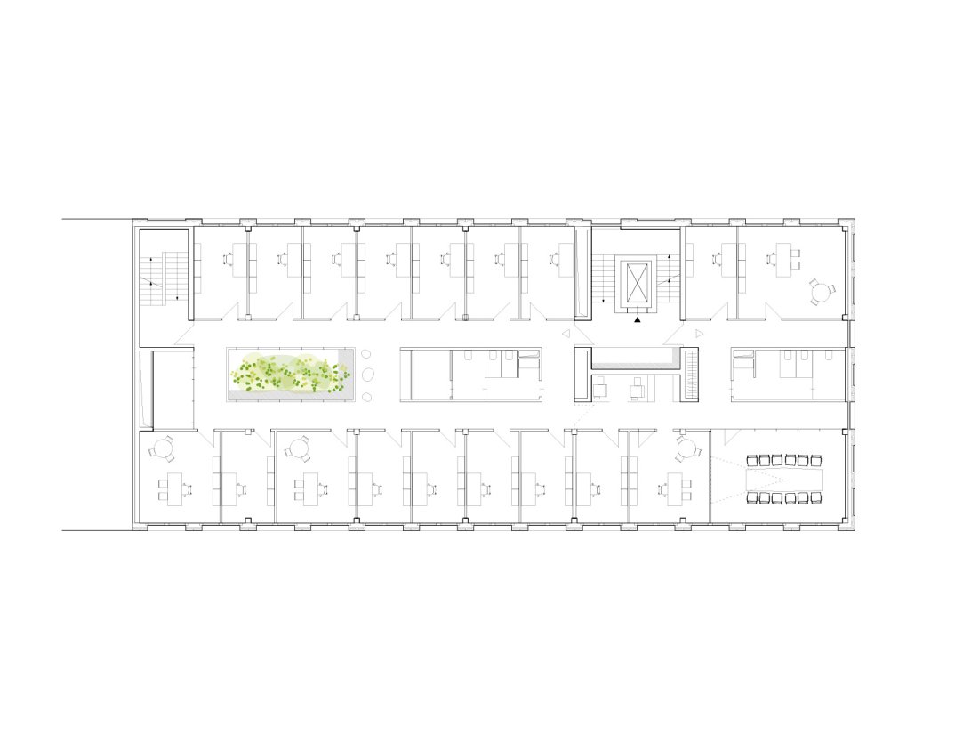 Ziel des Entwurfs ist es, auf den örtlichen Kontext und funktionalen Vorgaben des Raumprogramms zu reagieren und dem Baukörper eine eigenständige Identität innerhalb des bestehenden Gebäudeensembles zu geben.