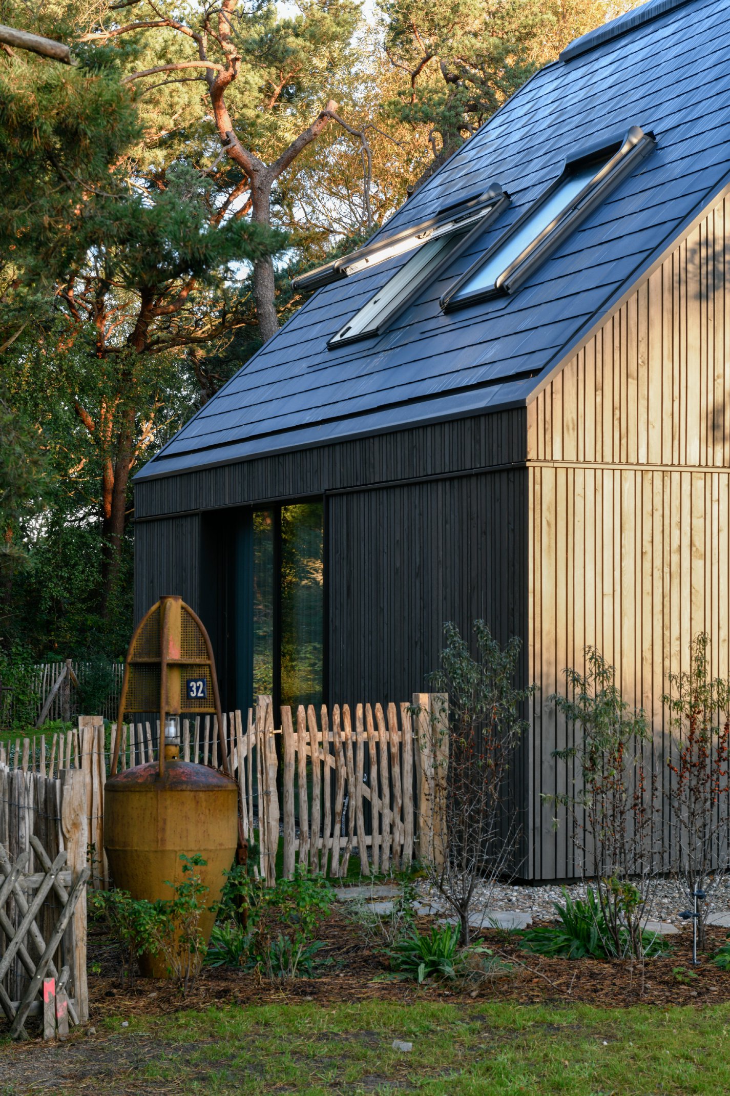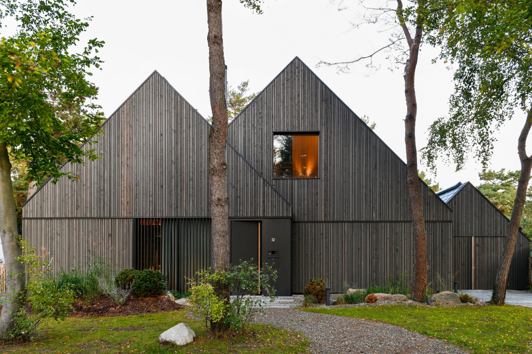 Das Ferienhaus an den Dünen der Ostsee liegt eingebettet in einer waldigen Umgebung mit kleinmaßstäblichen Reetdach-Häusern. Die Herausforderung bestand darin, ein Gebäude zu entwerfen, das sich städtebaulich zwischen Wald- und Grundstücksgrenzen einfügt und den funktionalen Anforderungen einer großen Familie sowie zusätzlicher Gäste gerecht wird.