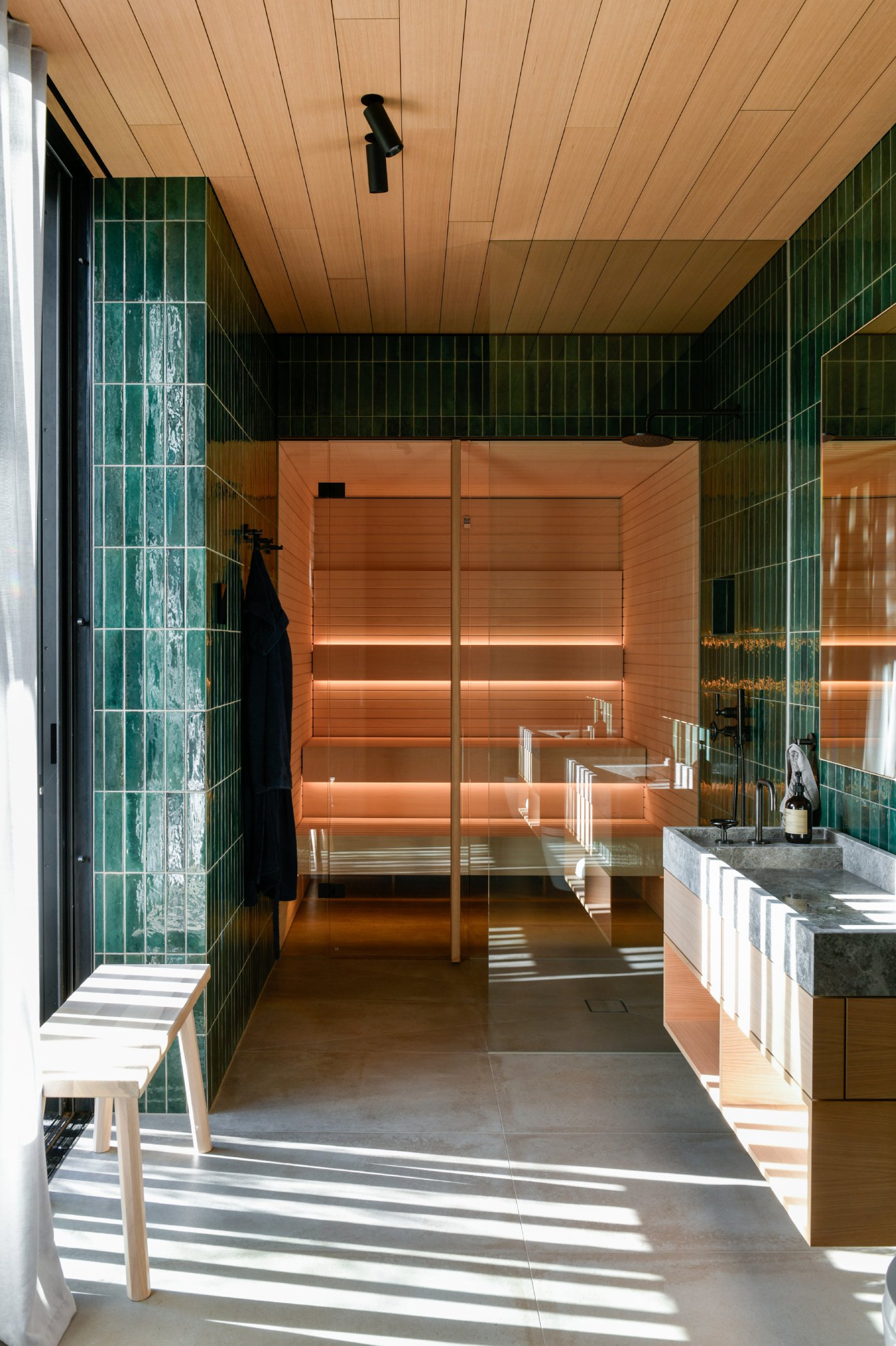 Die Materialität und Detaillierung folgen dem Prinzip der nachhaltigen Wertigkeit und vereinen handwerkliche Präzision mit zeitloser Ästhetik. Eine reduzierte Materialpalette aus natürlichen, langlebigen Werkstoffen wie Holz, Stein und Metall verleiht dem Gebäude eine harmonische Ausstrahlung.