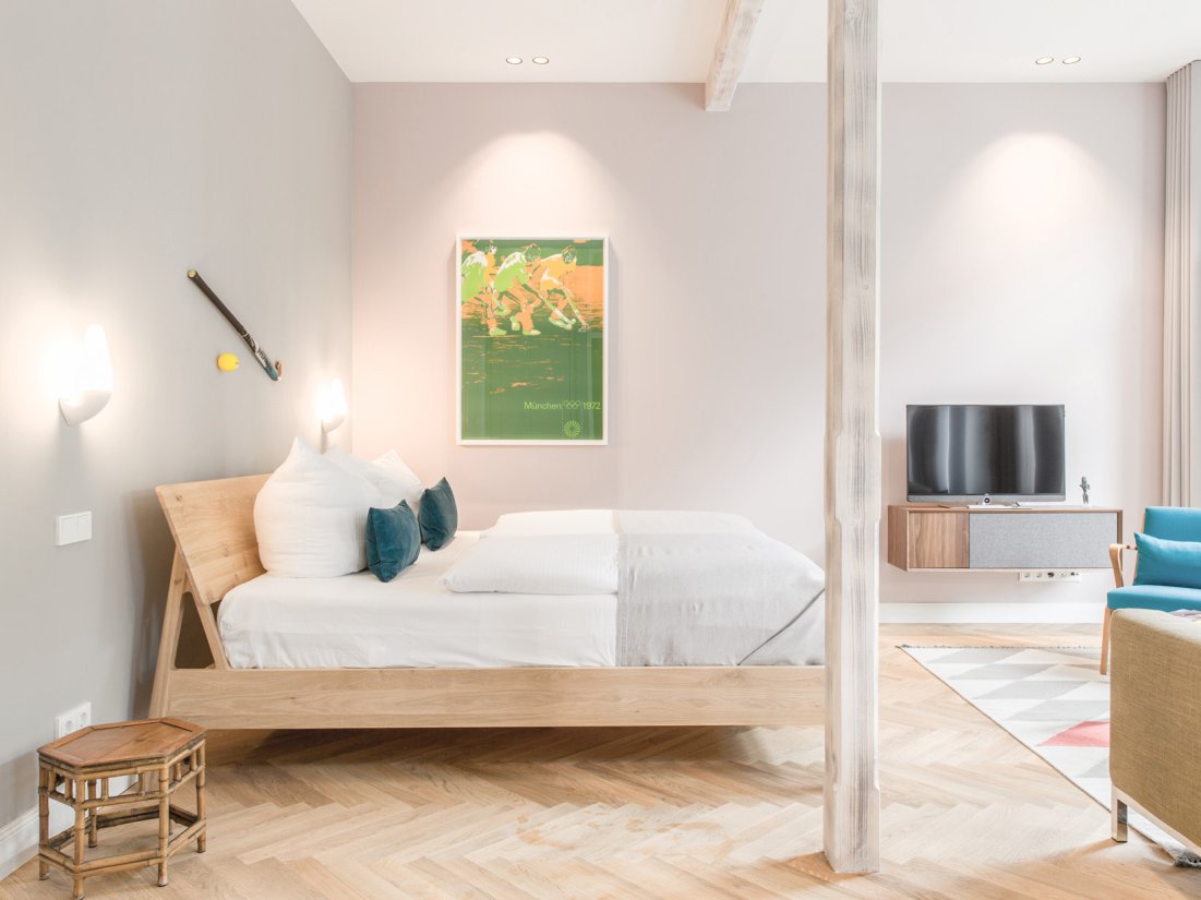 Frische Farben, natürliche Oberflächen und Textilien verleihen den Räumen einen sinnlichen und atmosphärisch behaglichen Charakter. Die Farbigkeit und Struktur referenziert dabei die vielfältige Tonalität der Insel. Die verwendete Palette konzentriert sich vornehmlich auf helle Weisstöne und natürliche Holzoberflächen. Eine legere Mischung zeitgenössischer Designerstücke und Vintage Klassiker der skandinavischen Moderne bespielen die einzelnen Räume und geben ihnen eine moderne, behagliche Wohlfühlatmosphäre.