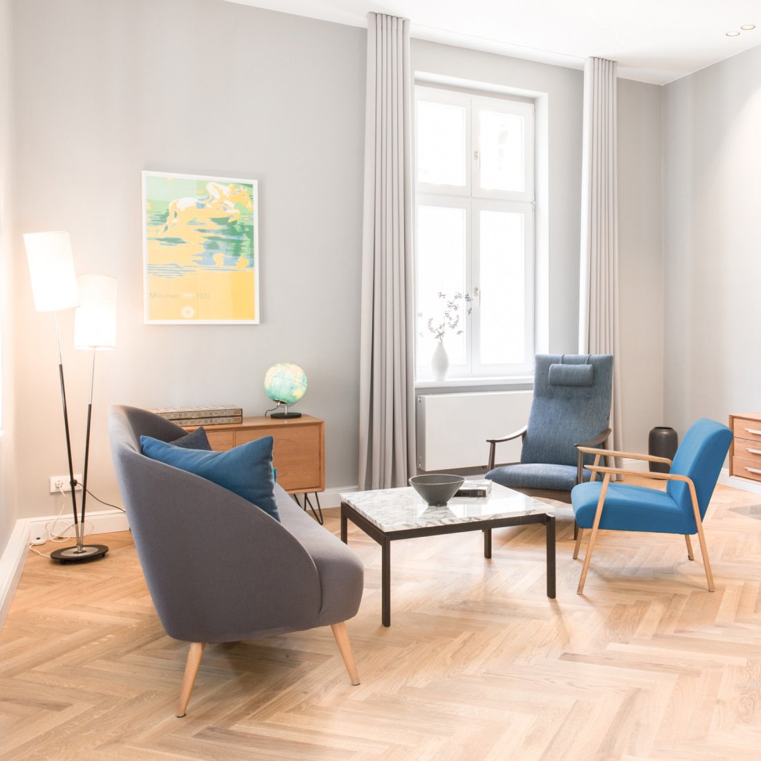 Eine kuratierte Auswahl an Kunst, Literatur und Musik verleiht den Räumen eine persönliche Note und kulturelle Identifikation. Hochwertige Designobjekte Pflegeprodukte und Wohnaccessoires ergänzen