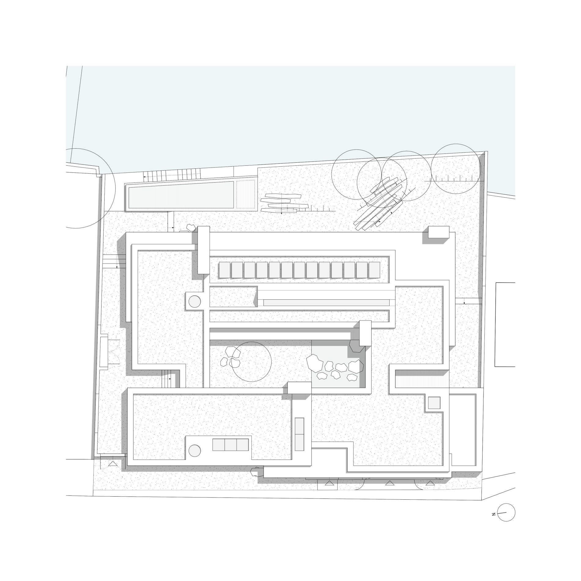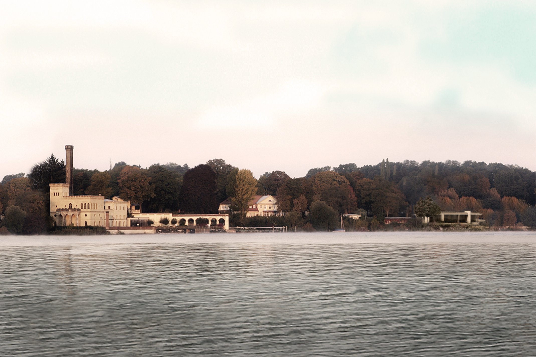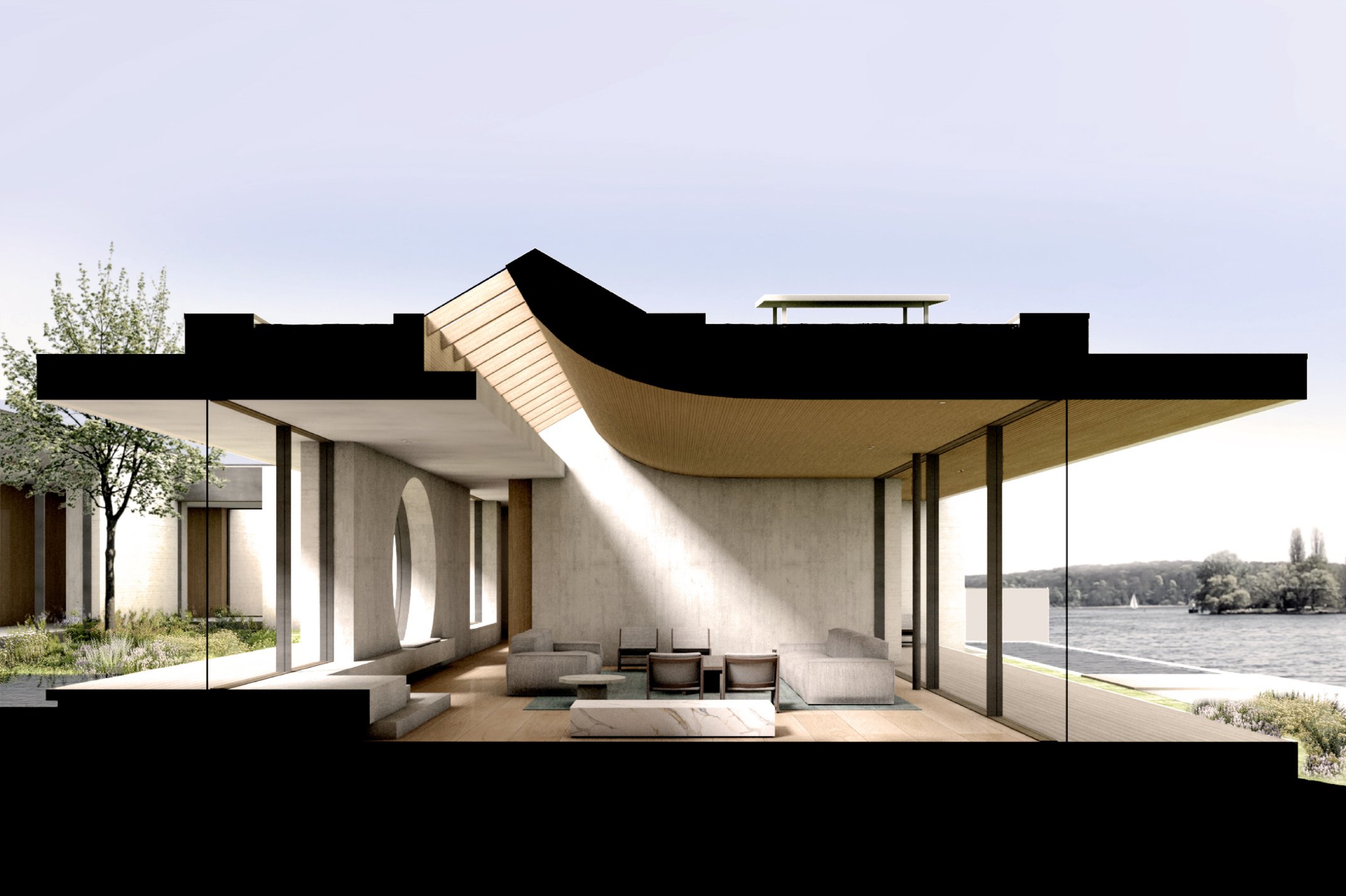 Die Bauaufgabe untersucht den Neubau einer Villa am Jungfernsee in Potsdam mit ca. 810m2 BGF. Der Entwurf schlägt ein aus mehreren eingeschossigen Baukörpern mit verschiedenen Höhen bestehendes Ensemble um einen großen Atriumhof vor.