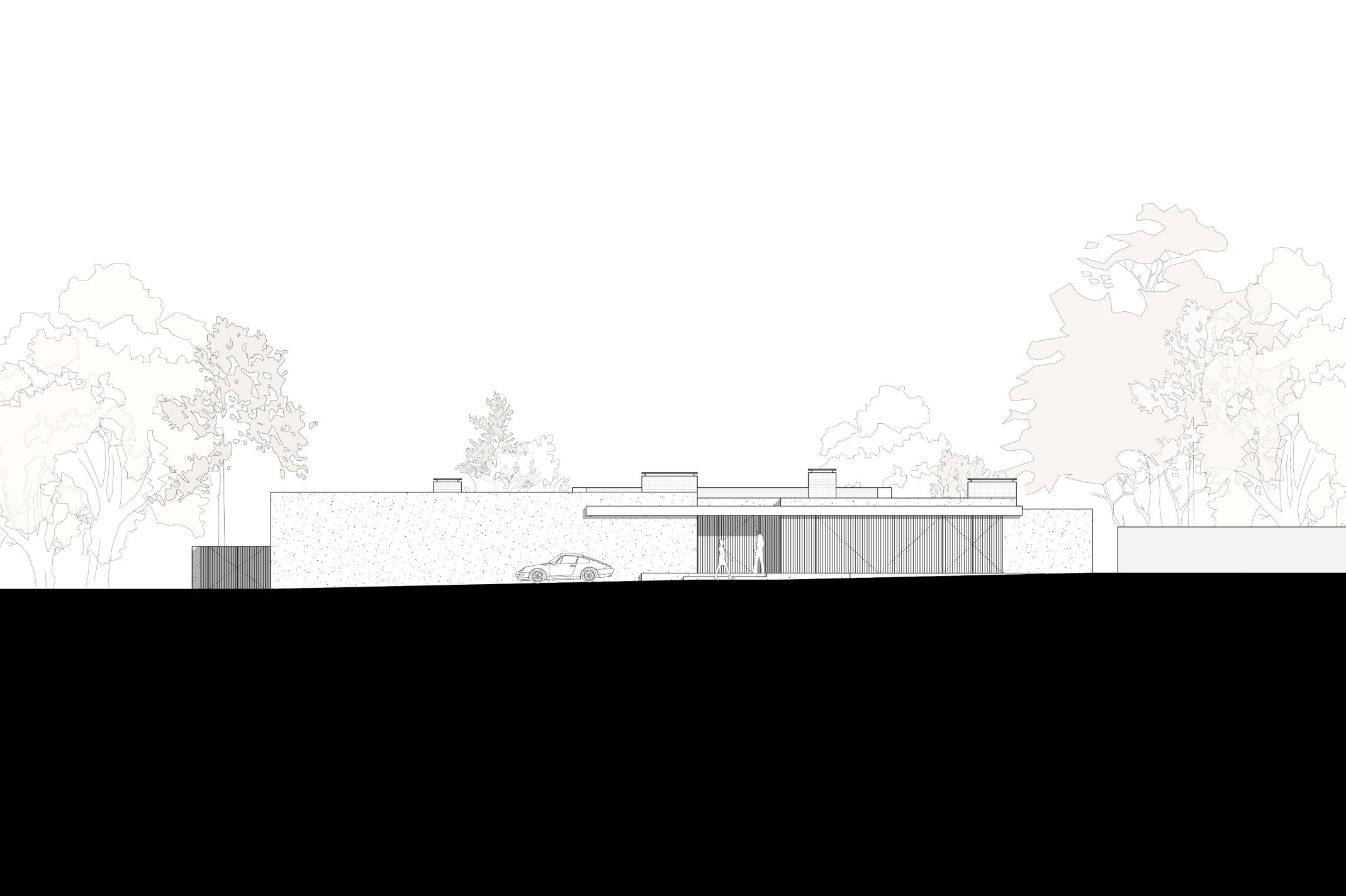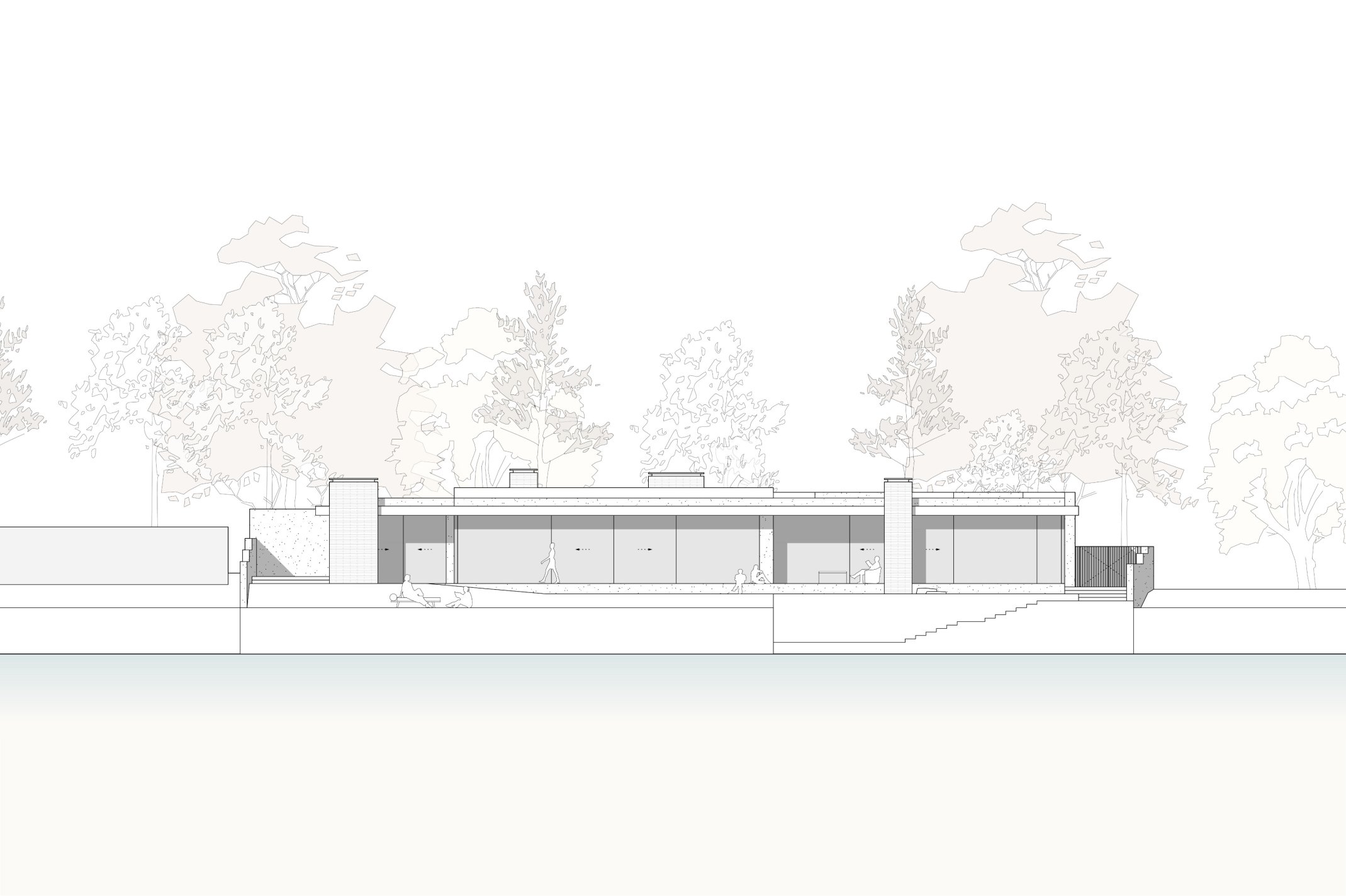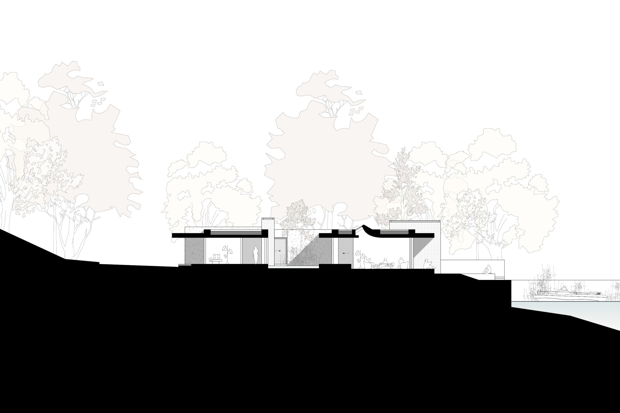 Die Bauaufgabe untersucht den Neubau einer Villa am Jungfernsee in Potsdam mit ca. 810m2 BGF. Der Entwurf schlägt ein aus mehreren eingeschossigen Baukörpern mit verschiedenen Höhen bestehendes Ensemble um einen großen Atriumhof vor.