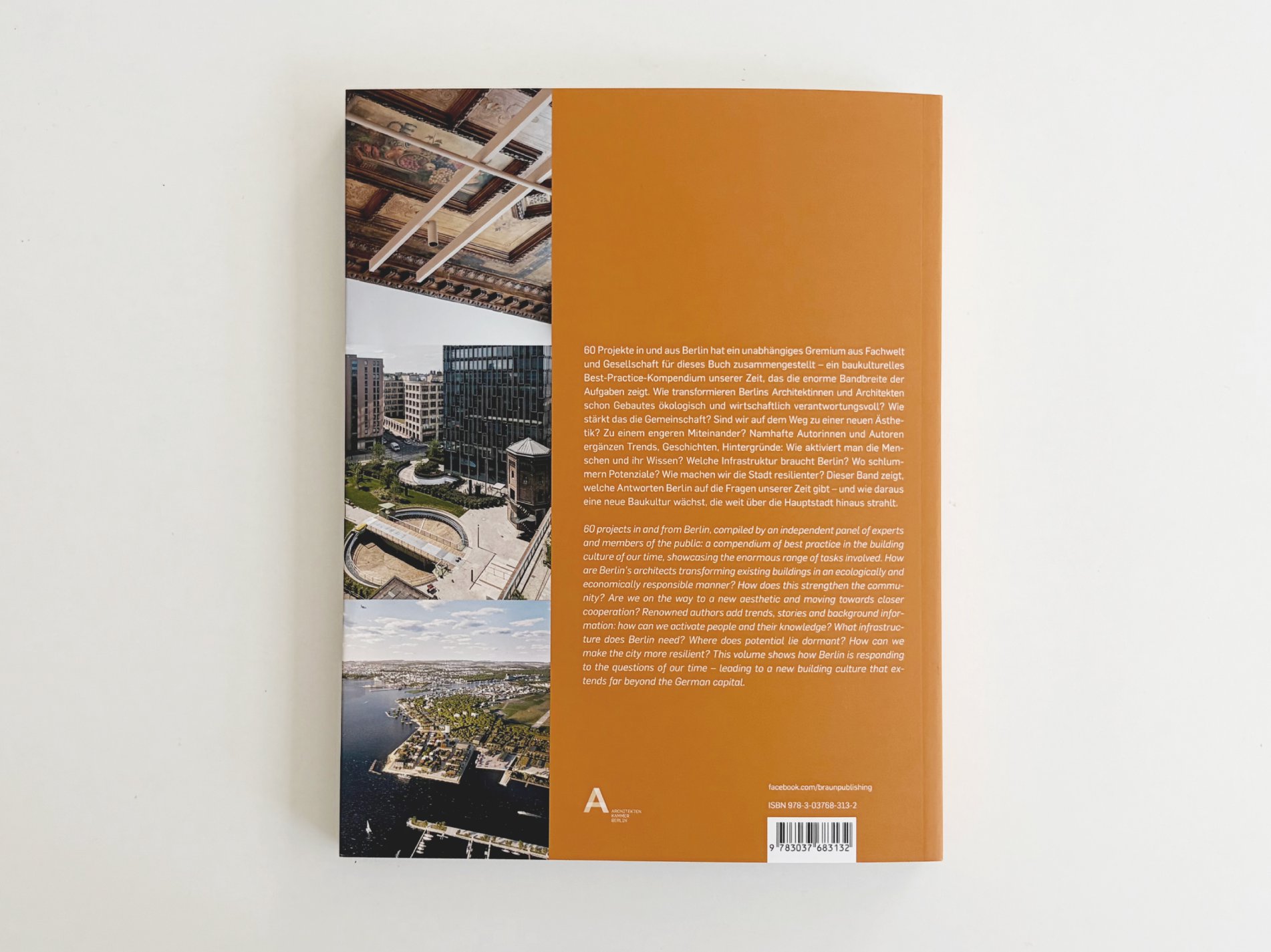 Über das Buch: “60 Projekte in und aus Berlin hat ein unabhängiges Gremium aus Fachwelt und Gesellschaft für dieses Buch zusammengestellt – ein baukulturelles Best Practice Kompendium unserer Zeit, das die enorme Bandbreite der Aufgaben zeigt. Wie transformieren Berlins Architektinnen und Architekten schon Gebautes ökologisch und wirtschaftlich verantwortungsvoll? Wie stärkt das Gemeinschaft? Sind wir auf dem Weg zu einer neuen Ästhetik? Zu einem engeren Miteinander? Namhafte Autorinnen und Autoren ergänzen Trends, Geschichten, Hintergründe: Wie aktivieren wir die Menschen und ihr Wissen? Welche Infrastruktur braucht Berlin? Wo schlummern Potenziale? Wie machen wir die Stadt resilienter? Dieser Band zeigt, welche Antworten Berlin auf die Fragen unserer Zeit gibt – und wie daraus eine neue Baukultur wächst, die weit über die Hauptstadt hinaus strahlt.”